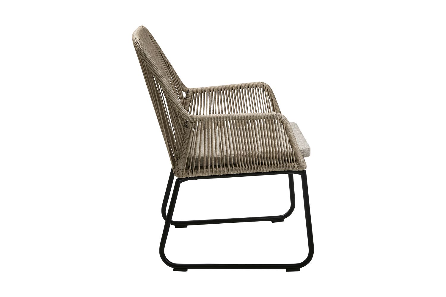 Midway ist eine Serie aus verdrilltem Kunstrattan mit weichen, modernen Formen. Alle Modelle haben einen Aluminiumrahmen und sind aus Kunstrattan handgeflochten. Die Serie umfasst einen Esstischstuhl, einen Sessel, einen Fußhocker und eine Bank. Sofas und Stühle haben Auflagen aus Olefin. In zwei Farben erhältlich.Ein bequemer Esstischstuhl mit gemütlicher und anschmiegsamer Rücken- und Armlehne.