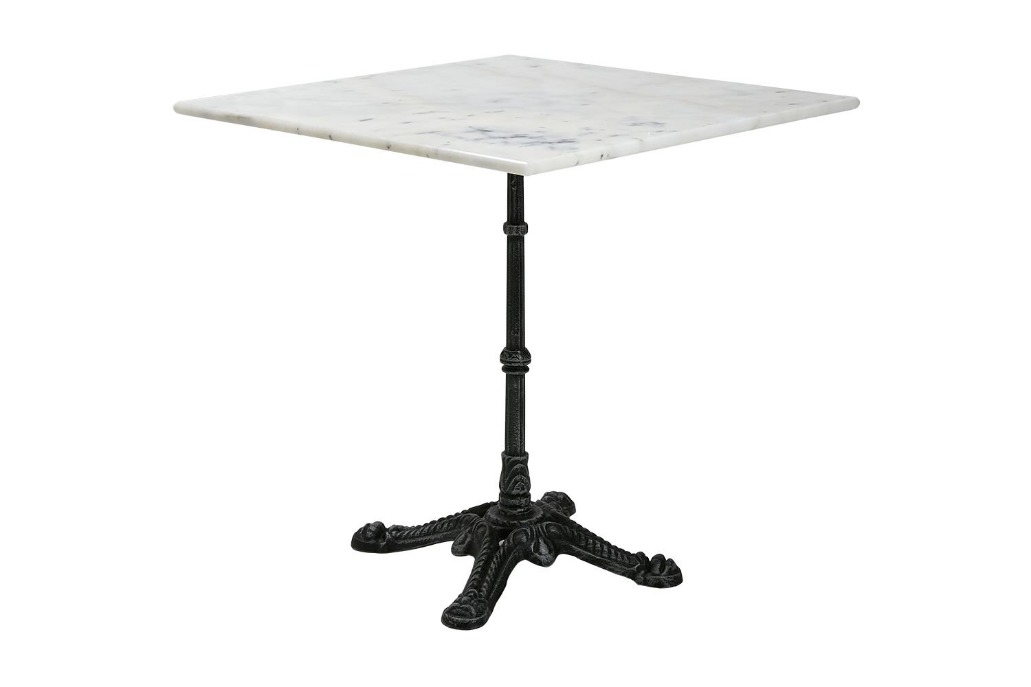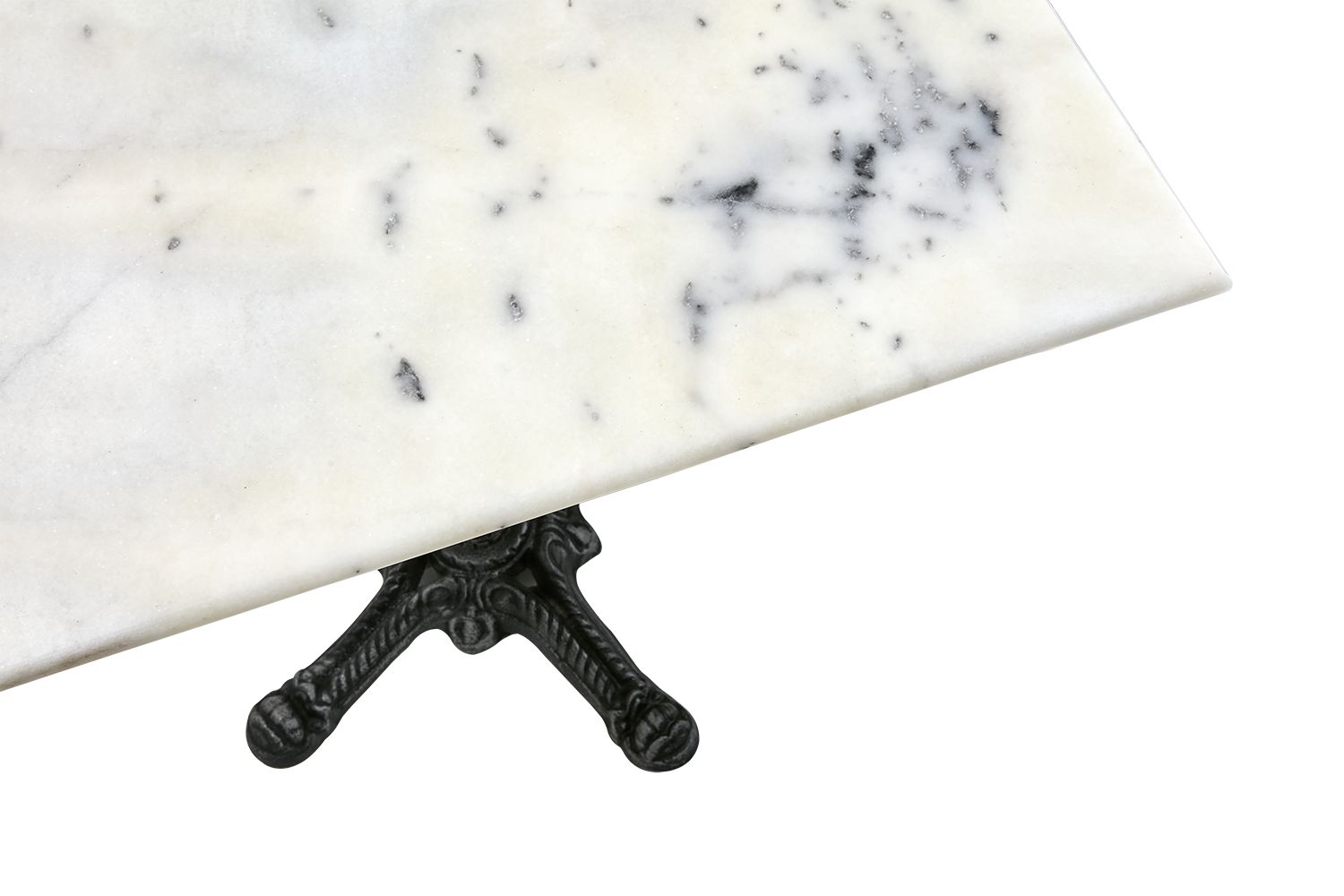 Marmortisch mit Gestell aus Gußeisen und einer Tischplatte aus weißem oder schwarzem Marmor.