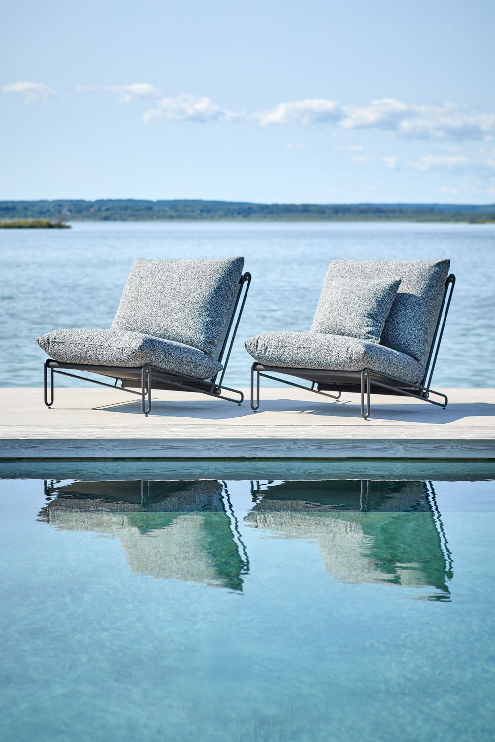 Blixt zieht die Blicke auf sich, entweder als Solitärsessel oder als Komposit-Sofa. Moderne Winkel und guter Komfort - passt in verschiedene Outdoor-Umgebungen. Aluminiumrahmen (Pearl white, Light Grey och Black) und Polster aus wasserabweisendem Olefingewebe mit TPU-Innenfutter. Die Kissen sind in den Farben Teddy Orange, Teddy Ant, Teddy Verde, Sky Grey und Clay Beige erhältlich. Zum Anschluss an ein Sofa gibt es Beschläge (im Lieferumfang enthalten) als Zubehör.