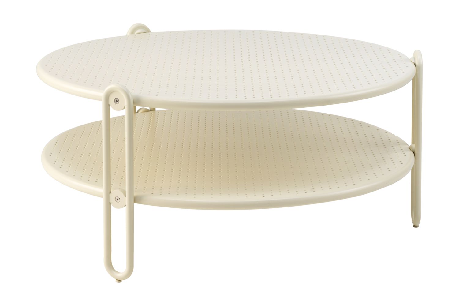 Der runde Couchtisch Blixt ist in zwei Höhen und Größen erhältlich; ein größerer (42 cm) mit einem Durchmesser von 65 cm und ein niedrigerer (39 cm) mit einem Durchmesser von 85 cm. Die beiden runden Metallscheiben in unterschiedlichen Ebenen sind perforiert – ein Detail, das sowohl stilvoll als auch praktisch ist. Erhältlich in Black, Light Grey och Peal White. Passt einzeln oder paarweise – die Größen überlappen sich dank der Höhenunterschiede.