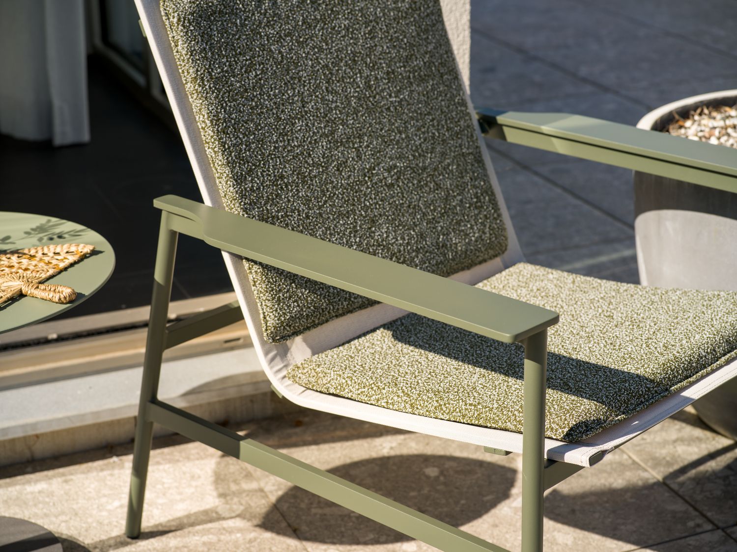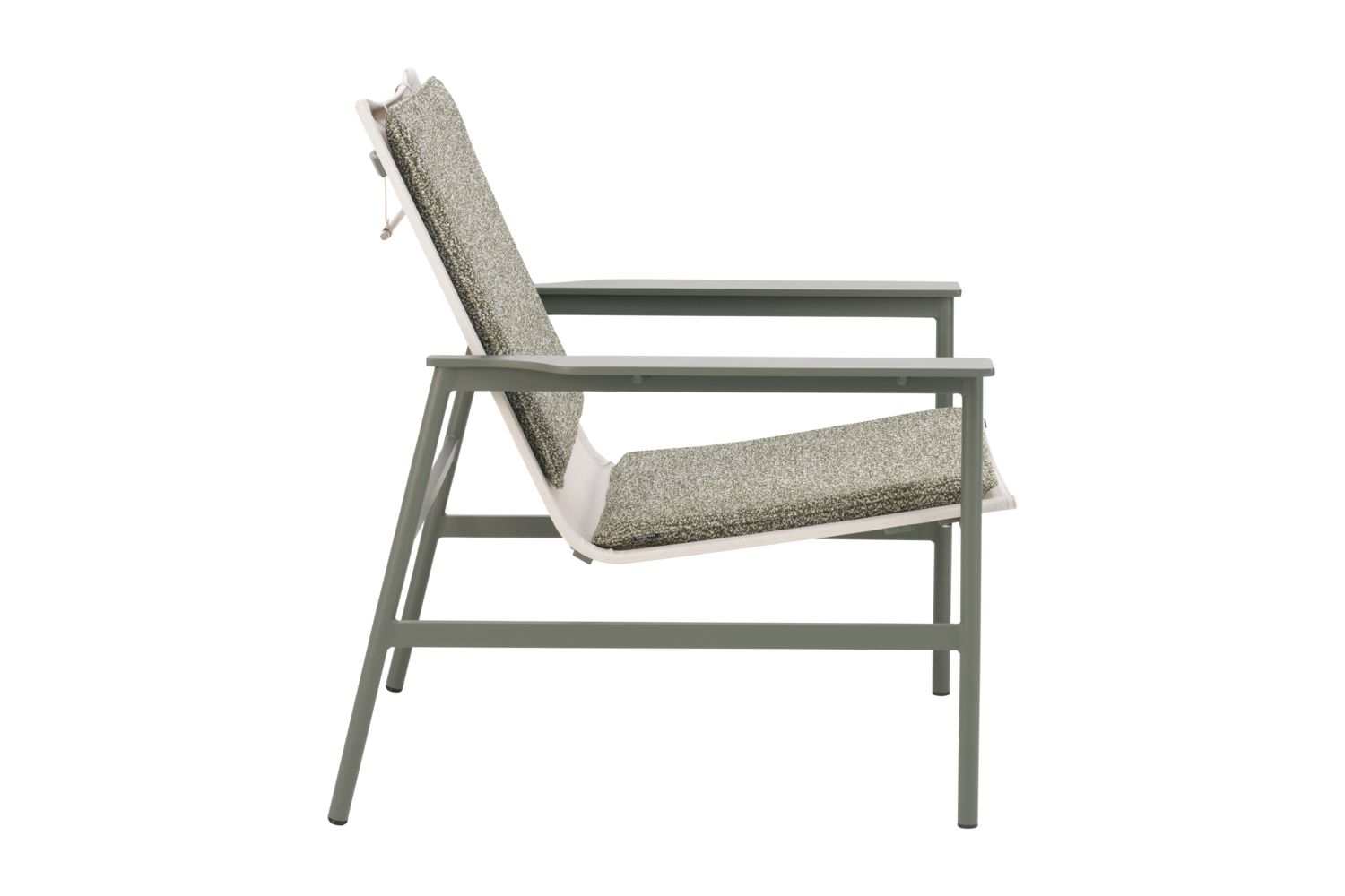 Soro bietet Komfort – egal ob allein stehend oder als Teil einer Sofagruppe. Der einladende Sessel hat breite Armlehnen und weiche Kissen aus Stoff mit federnder Füllung. Das Rückenkissen wird mit einer Gewichtsstütze an Ort und Stelle gehalten, und der Sitz aus Textilene sorgt für ein luftiges Gefühl. Das Ergebnis ist ein Sessel, der immer zum Entspannen einlädt.