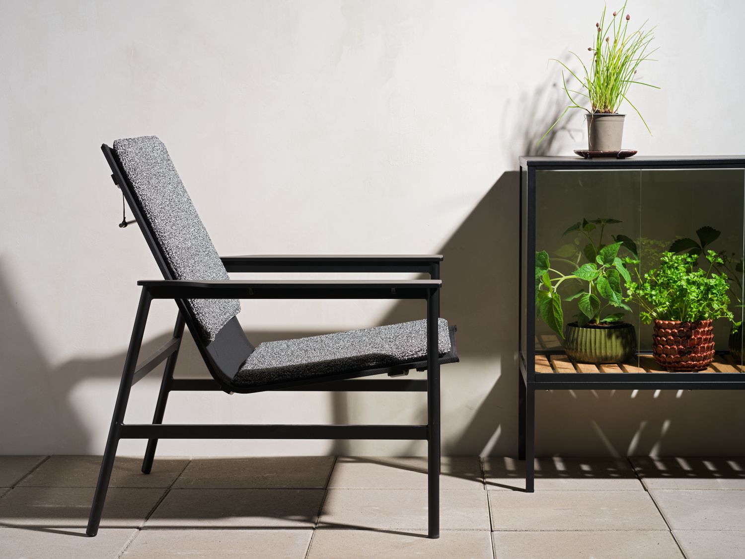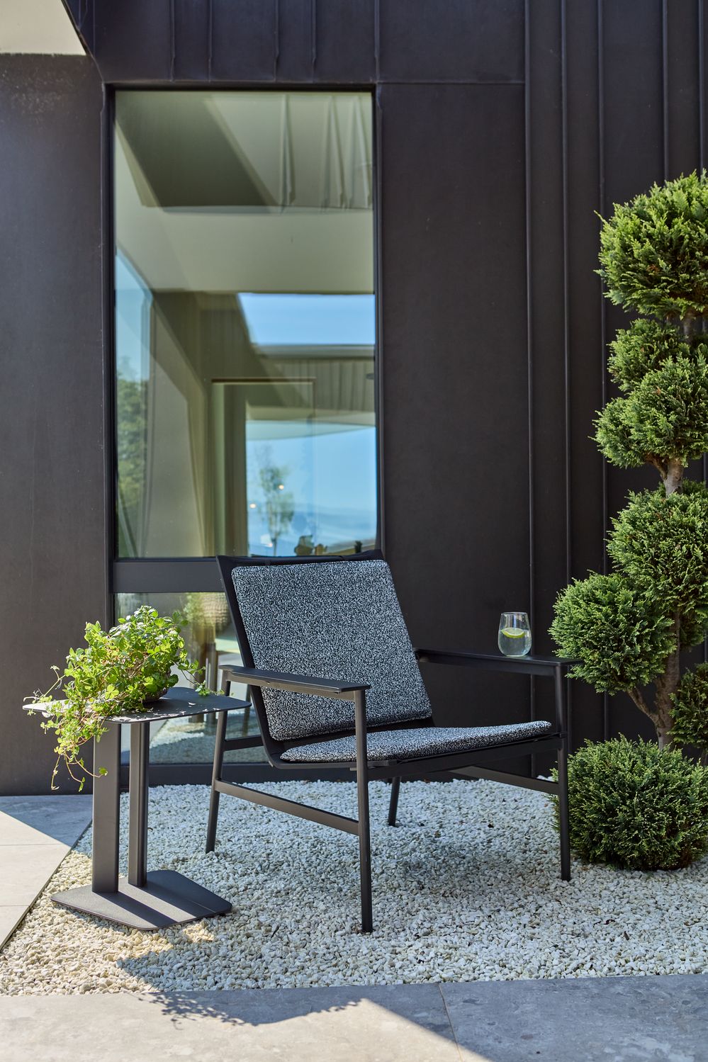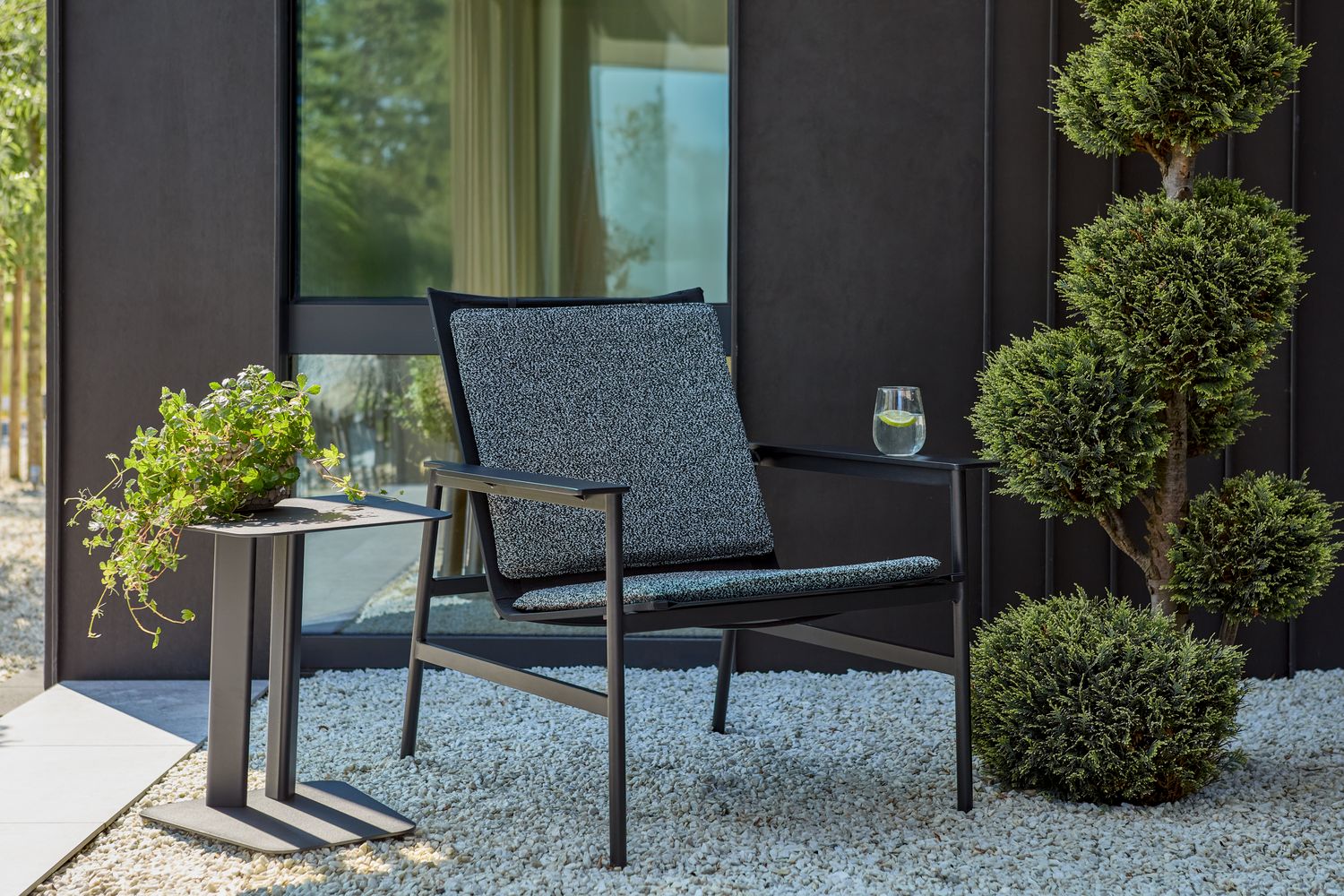 Soro bietet Komfort – egal ob allein stehend oder als Teil einer Sofagruppe. Der einladende Sessel hat breite Armlehnen und weiche Kissen aus Stoff mit federnder Füllung. Das Rückenkissen wird mit einer Gewichtsstütze an Ort und Stelle gehalten, und der Sitz aus Textilene sorgt für ein luftiges Gefühl. Das Ergebnis ist ein Sessel, der immer zum Entspannen einlädt.