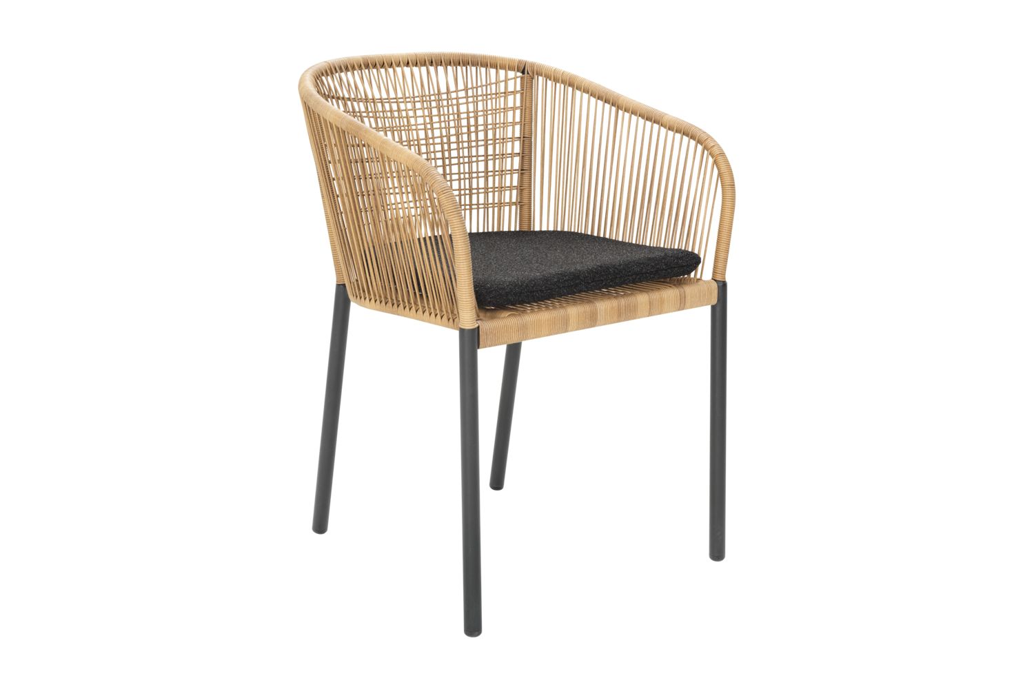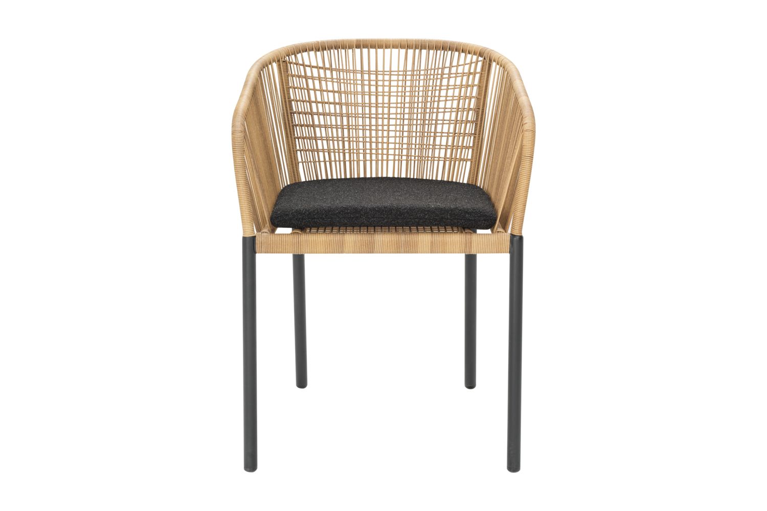 Delta kombiniert Komfort und Langlebigkeit mit elegantem geflochtenem Design. Der pulverbeschichtete Aluminiumrahmen ist rost- und korrosionsbeständig, während das Geflecht in erdigen Tönen einen organischen Ausdruck verleiht. Inklusive weichem Kissen aus Teddy-Stoff. Stapelbar auf bis zu vier Stühle.
